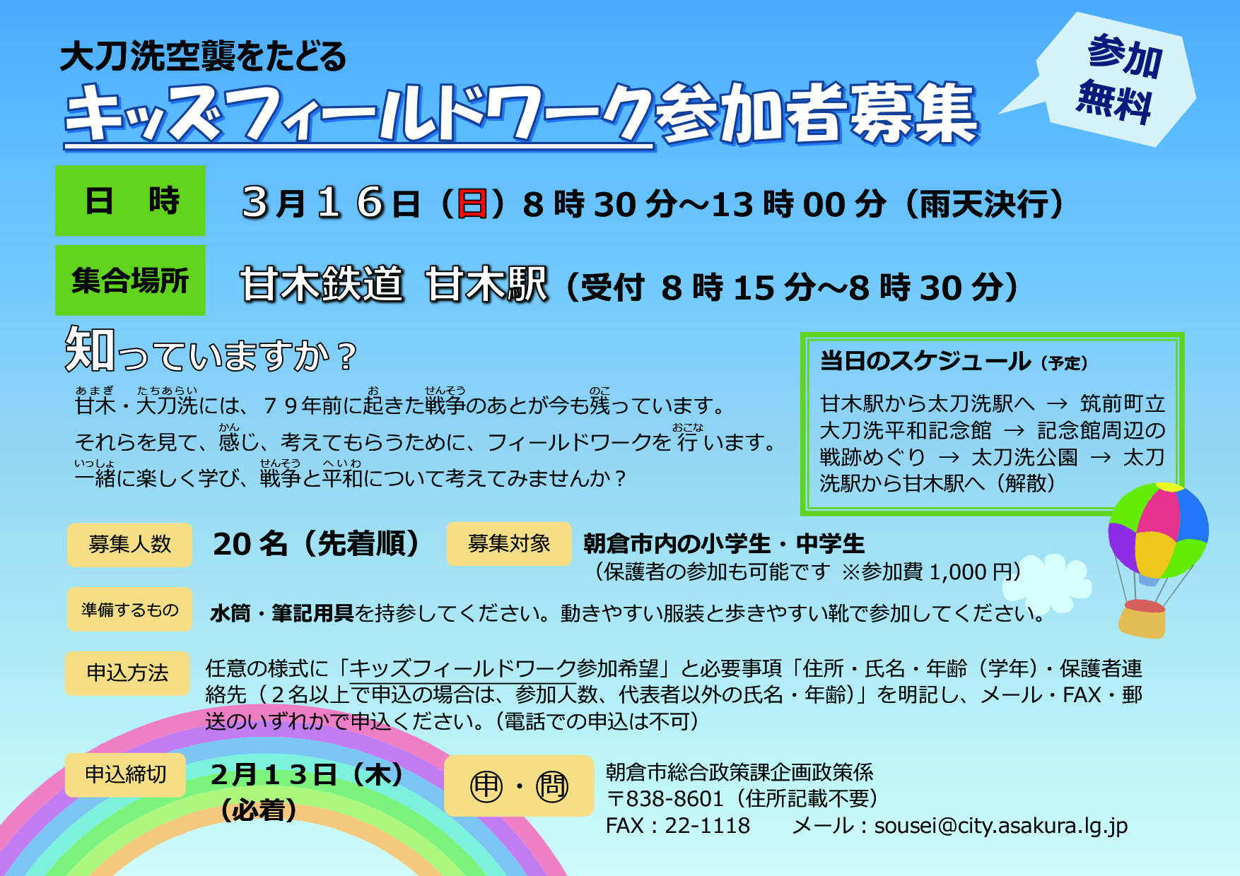 朝倉市内の小学生・中学生(保護者の参加も可能です)