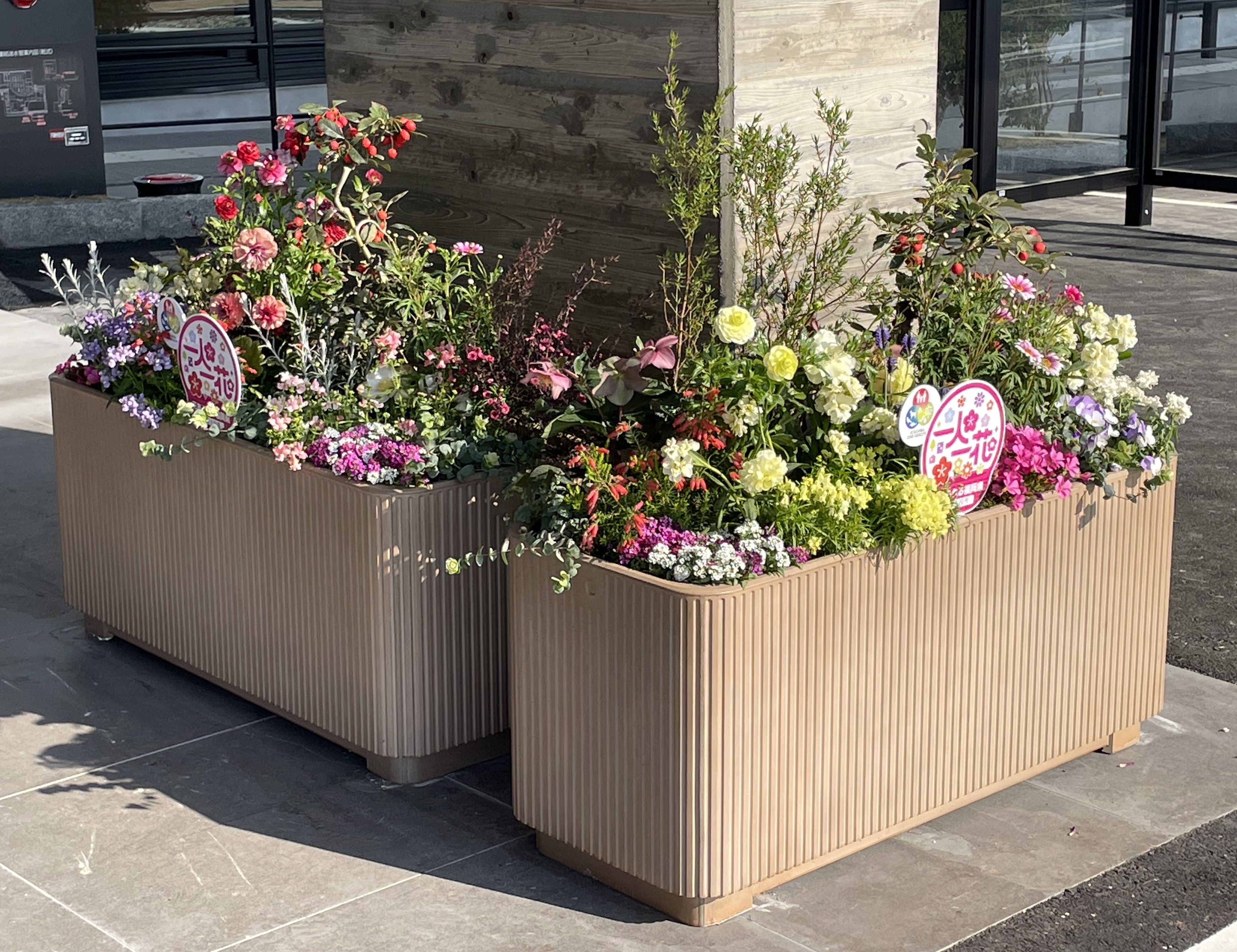 1.企業名等を書いた「花による美しいまちづくり」のプレートを花壇に挿して企業等のPRができます。