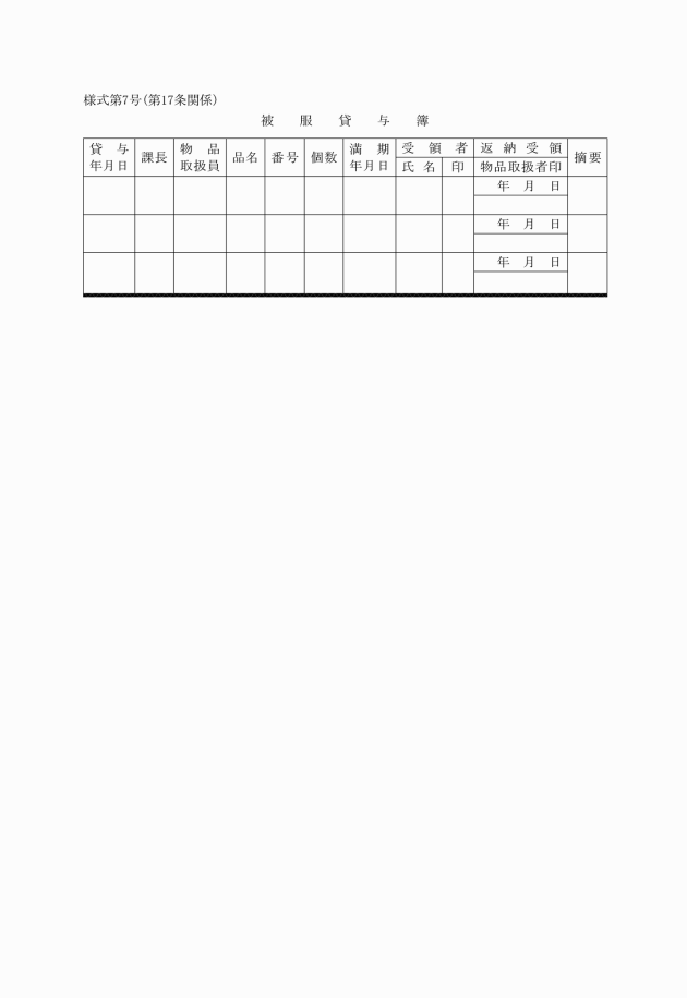 (3) 貸与する被服は、被服貸与簿(様式第7号)
