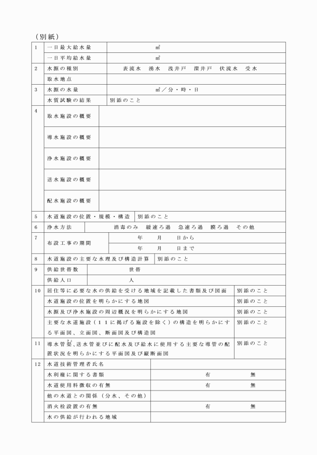 第2条 法第33条第1項の申請書は、専用水道布設工事確認申請書(様式第1号)とする。