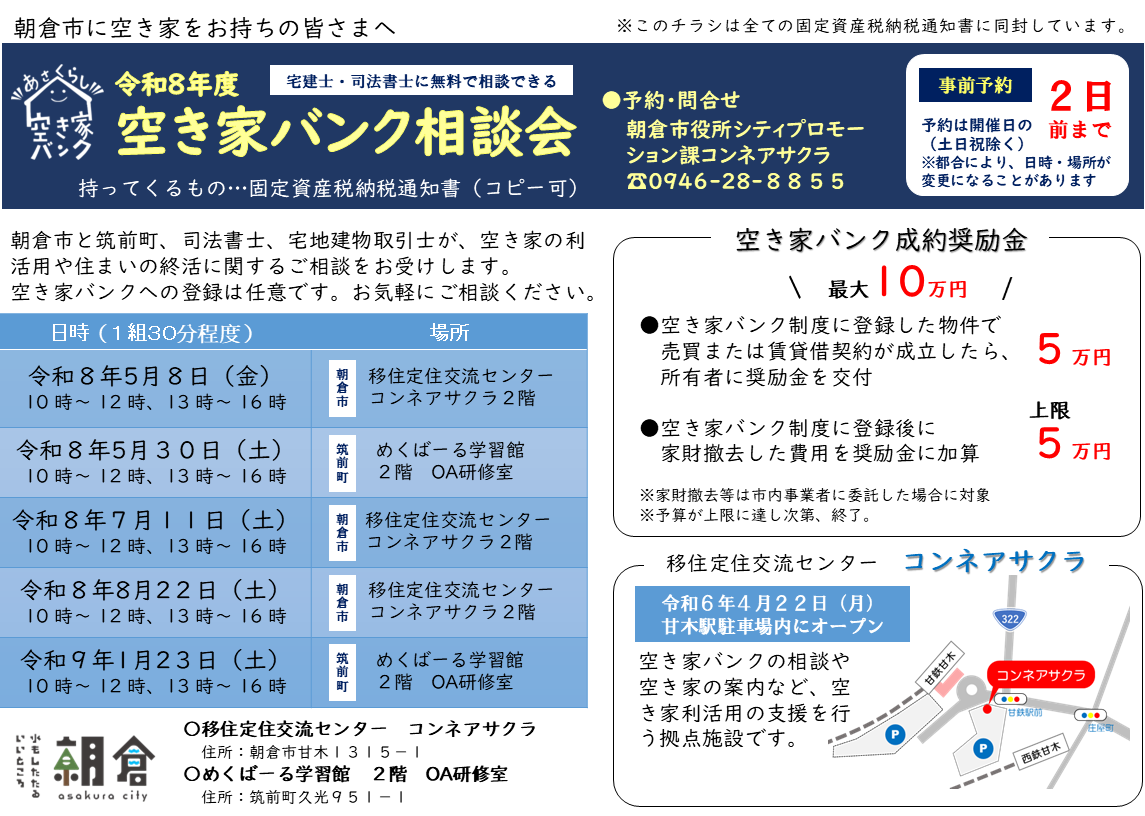 令和8年度 朝倉市・筑前町合同 空き家バンク相談会