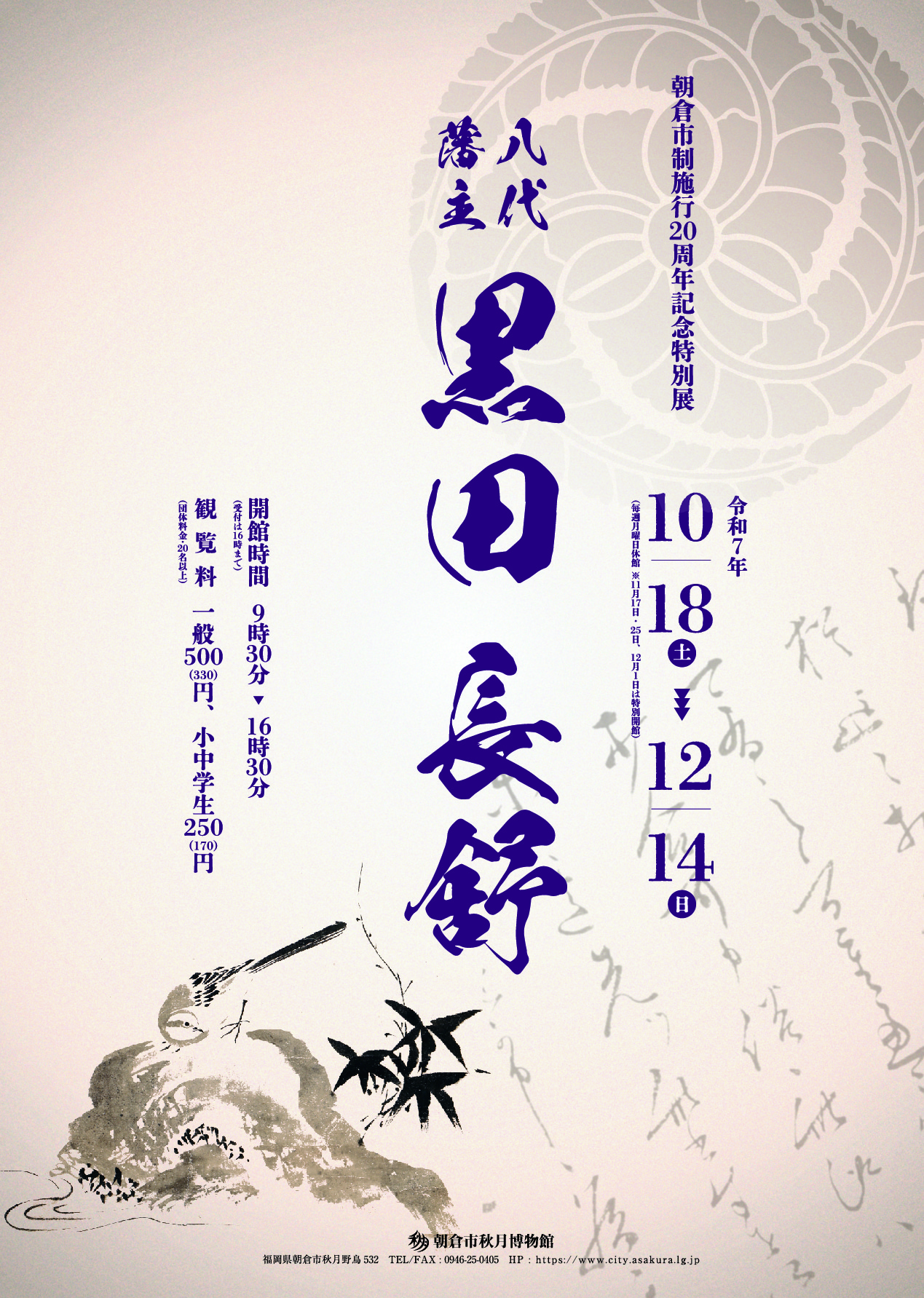 ●朝倉市秋月博物館 令和7年10月18日(土)より朝倉市制施行20周年記念特別展「八代藩主 黒田 長舒」を開催いたします。