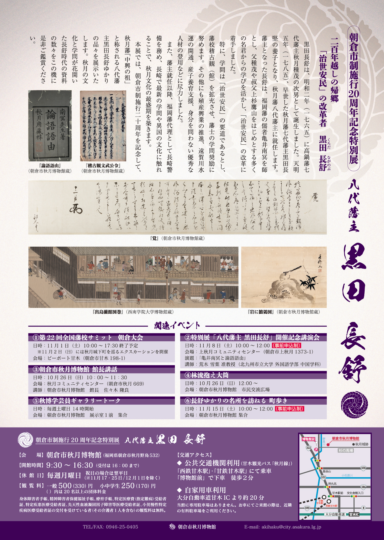 朝倉市制施行20周年記念特別展「八代藩主 黒田長舒」 |