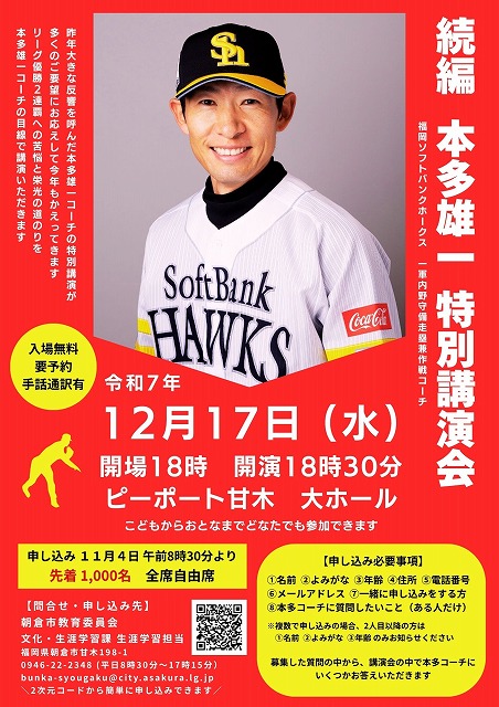 令和7年度朝倉市生涯学習講演会 「続編 本多雄一 特別講演会」