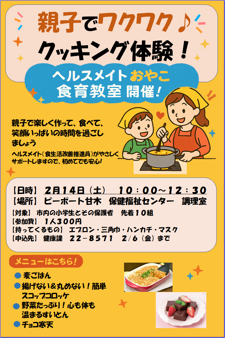 ます。親子で一緒に作って、食べて、楽しい時間を過ごしてみませんか?