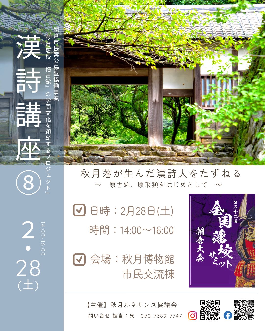 朝倉市提案公募型協働事業「秋月藩校『稽古館』の学問分野を顕彰するプロジェクト」