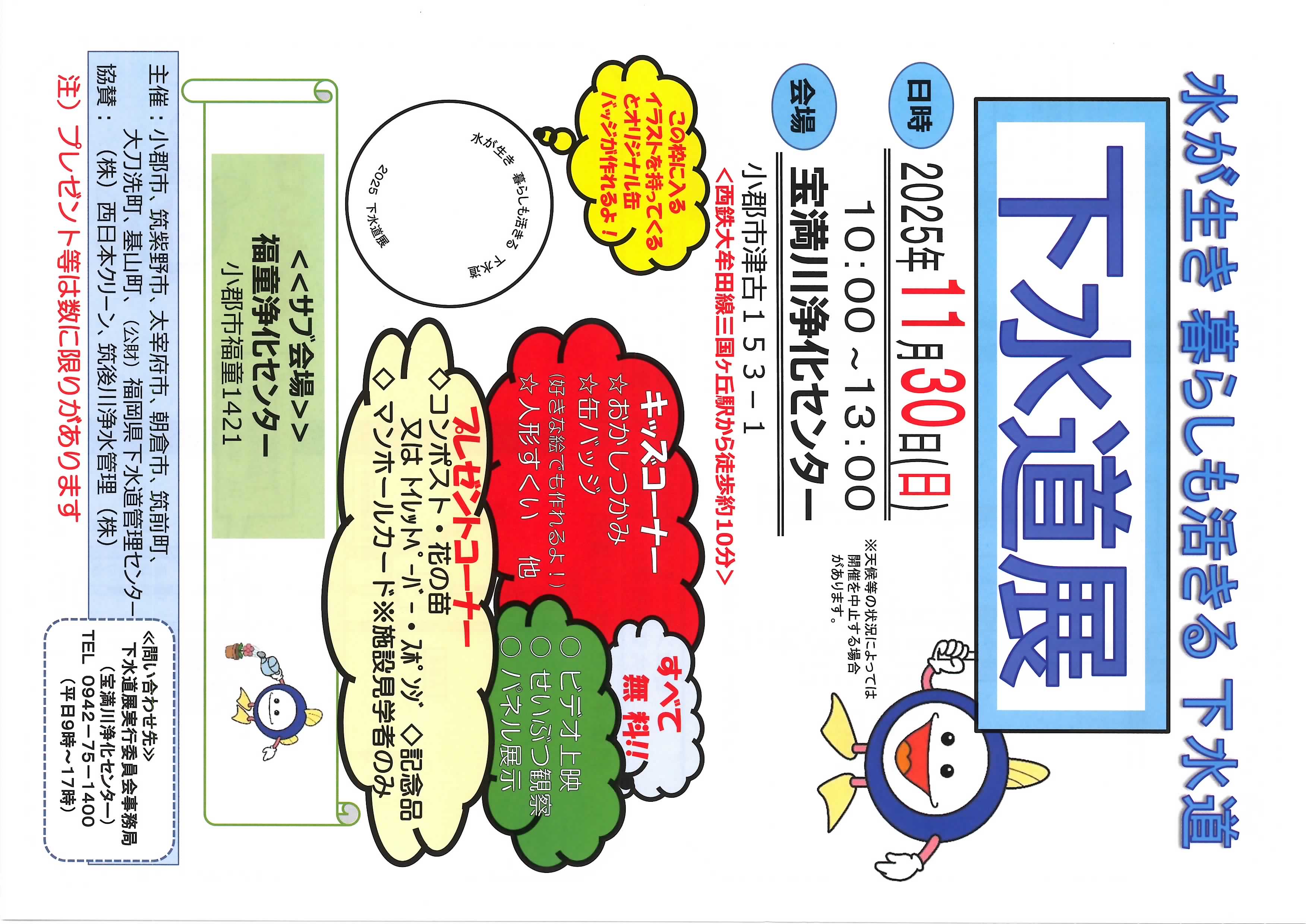 朝倉市では他の市町と合同で、下水道についての理解をより深めていただくためのイベントを開催します。