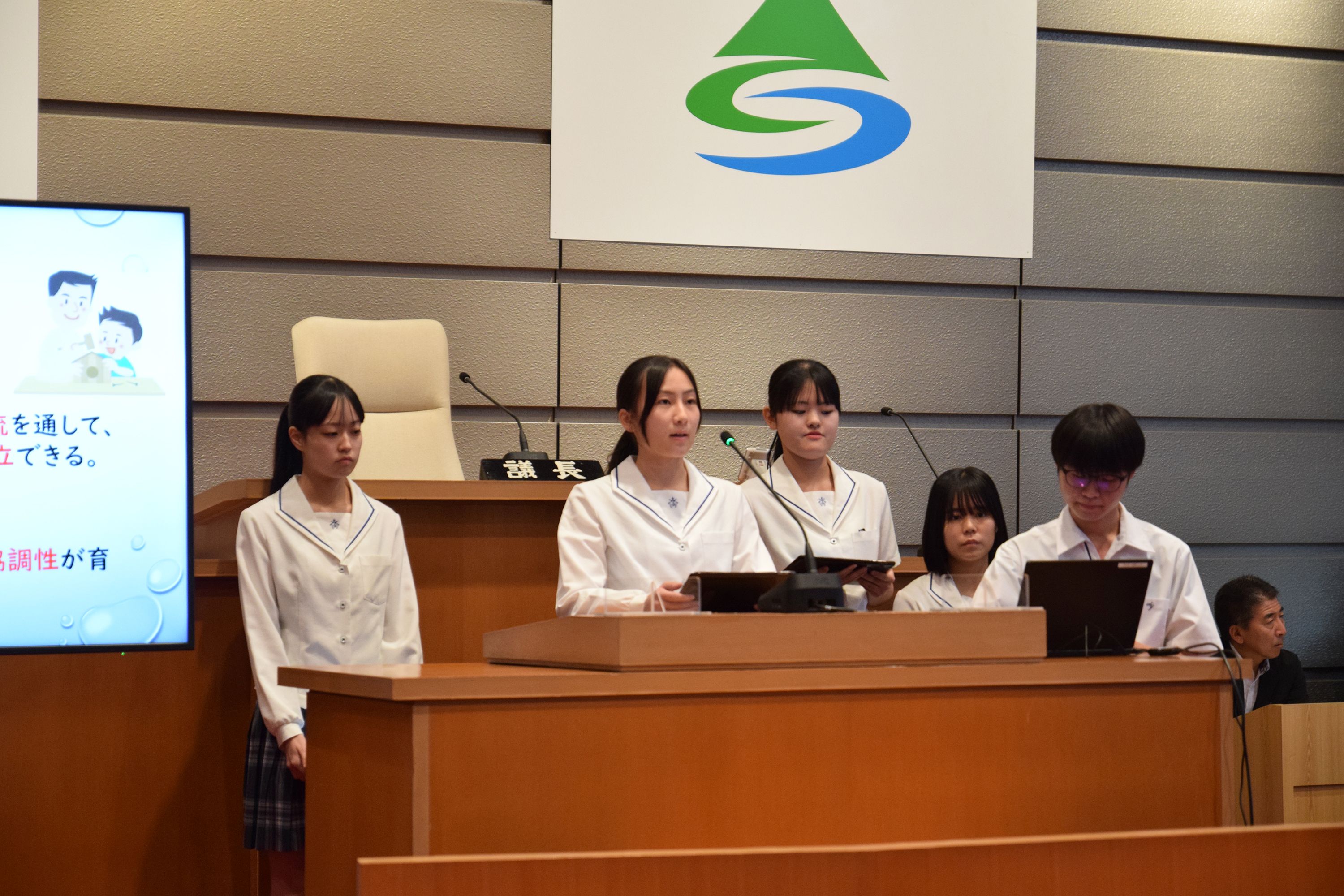 令和7年10月19日(日)13時00分から朝倉市役所本庁議場にて朝倉市の未来予想図(高校生の提言)発表会を開催しました。
