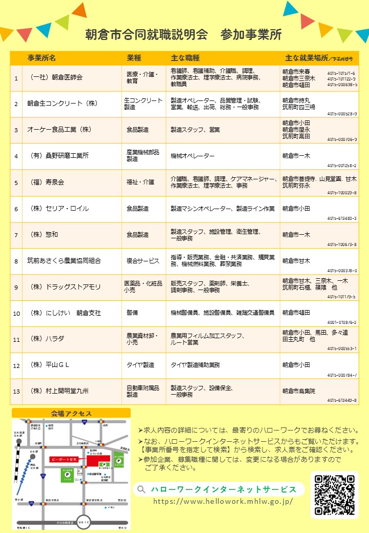 朝倉市内での就職をお考えの方、是非ご参加をお待ちしております!