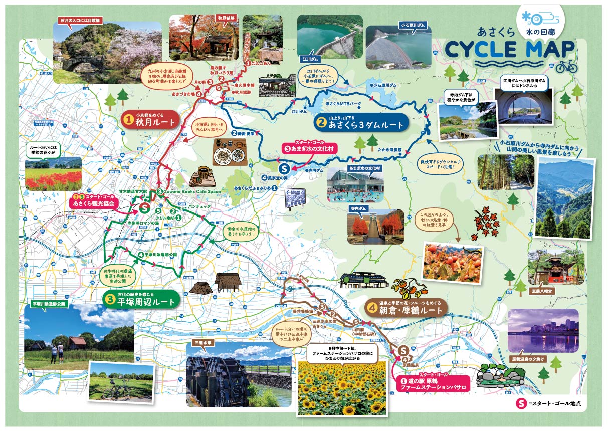 「水の回廊」を自転車でゆっくり巡り、朝倉市の魅力を感じていただくために、水の回廊サイクルマップを作成しました。